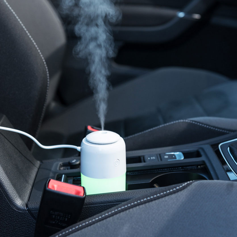 Създайте свежа и приятна атмосфера у дома, в офиса или в автомобила с този компактен овлажнител и пречиствател на въздуха. Уредът е с модерен дизайн и е изключително лесен за използване – само с едно натискане на бутон. Благодарение на компактния си размер, лесно се побира в държача за чаша на автомобила, а захранването с USB позволява работа от лаптоп, външна батерия или зарядно за кола.