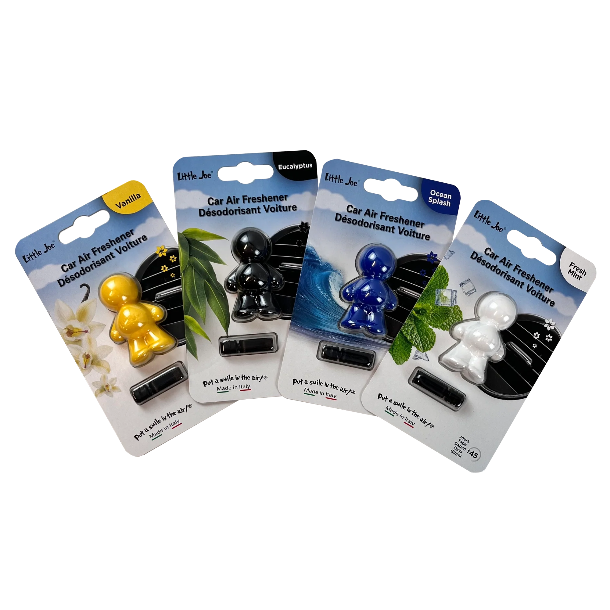 Bringen Sie mit der fröhlichen Little Joe Figur frischen Wind und ein charmantes Extra in Ihr Auto! Der kompakte Lufterfrischer wird einfach am Lüftungsgitter befestigt und verströmt beim Einschalten der Lüftung einen angenehmen, langanhaltenden Duft. Mit einer Größe von nur 5,5 x 3,5 cm fügt sich die Figur dezent ins Interieur ein und bleibt dabei stets ein Hingucker.