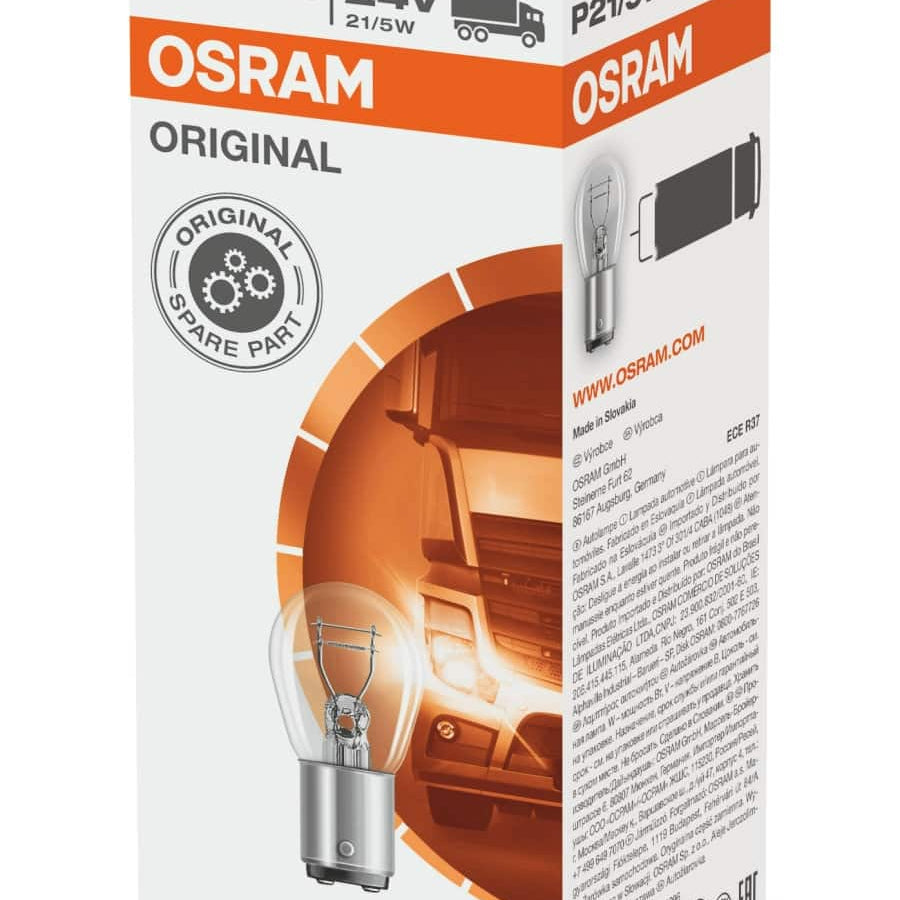 Osram Bay15d 21W and 21/5W bulbs for 12V and 24V systems. Ideal for tail lights, brake lights, and indicators. Premium quality and reliability for cars and trucks.