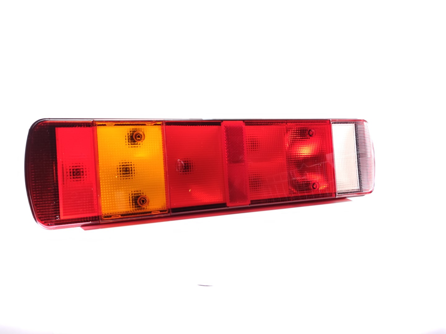 Тази 7-камерна задна лампа с извити ръбове е предназначена за камиони Scania R и е подходяща за монтаж отляво. Отличава се с практичен дизайн, който съчетава няколко функции в едно тяло.