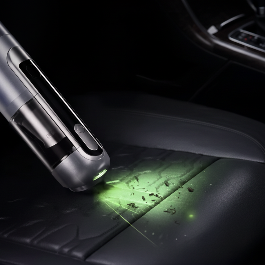 Aspiratorul portabil Q808 aduce puterea unui aparat compact direct în mâinile tale, fie că îl folosești în mașină sau acasă. Dispozitivul este prevăzut cu lumină verde pentru detectarea particulelor fine de praf, astfel încât să poți observa ușor murdăria chiar și pe suprafețe întunecate.